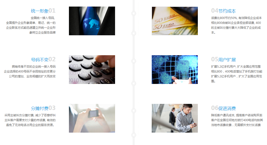 又稱400免費電話,是中國信息產(chǎn)業(yè)部授權(quán)中國聯(lián)通(4000電話/4006電話)、中國移動(4001電話/4007電話)、中國電信 (4008電話)三大固話運營商在全國推出的免長途費用的電話服務(wù)。該業(yè)務(wù)的通話費由主、被叫分?jǐn)偢顿M。主叫客戶只需支付當(dāng)?shù)厥性捹M用,被叫(企業(yè)用戶)只需按所選400電話類型及套餐支付相應(yīng)的接聽費用即可實 現(xiàn)自由通話。目前國內(nèi)共有4000、4001、4006、4007、4008五類號碼段,分別是:聯(lián)通4000電話、網(wǎng)通4006電話、移動4001電話、鐵通4007電話、電信4008電話。"400業(yè)務(wù)",是一 項為被叫客戶提供一個全國范圍內(nèi)的號碼,并把對該號碼的呼叫接至被叫客戶事先規(guī)定目的地(電話號碼或呼叫中心)的全國性智能網(wǎng)業(yè)務(wù)。
